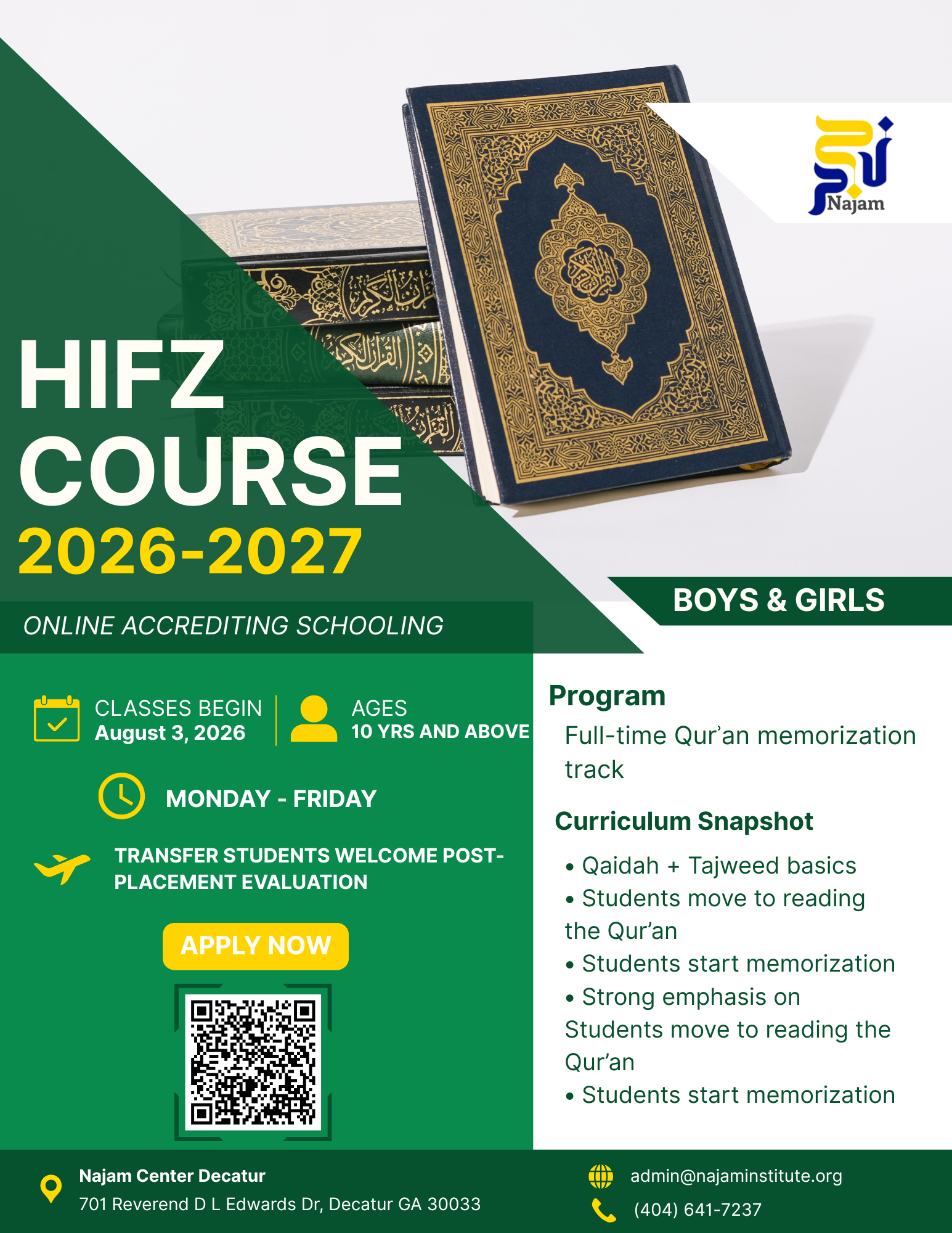 Najam Seminary was started by scholars born & raised in Atlanta, GA with the purpose of offering Higher Islamic Education without compromising Academic studies.